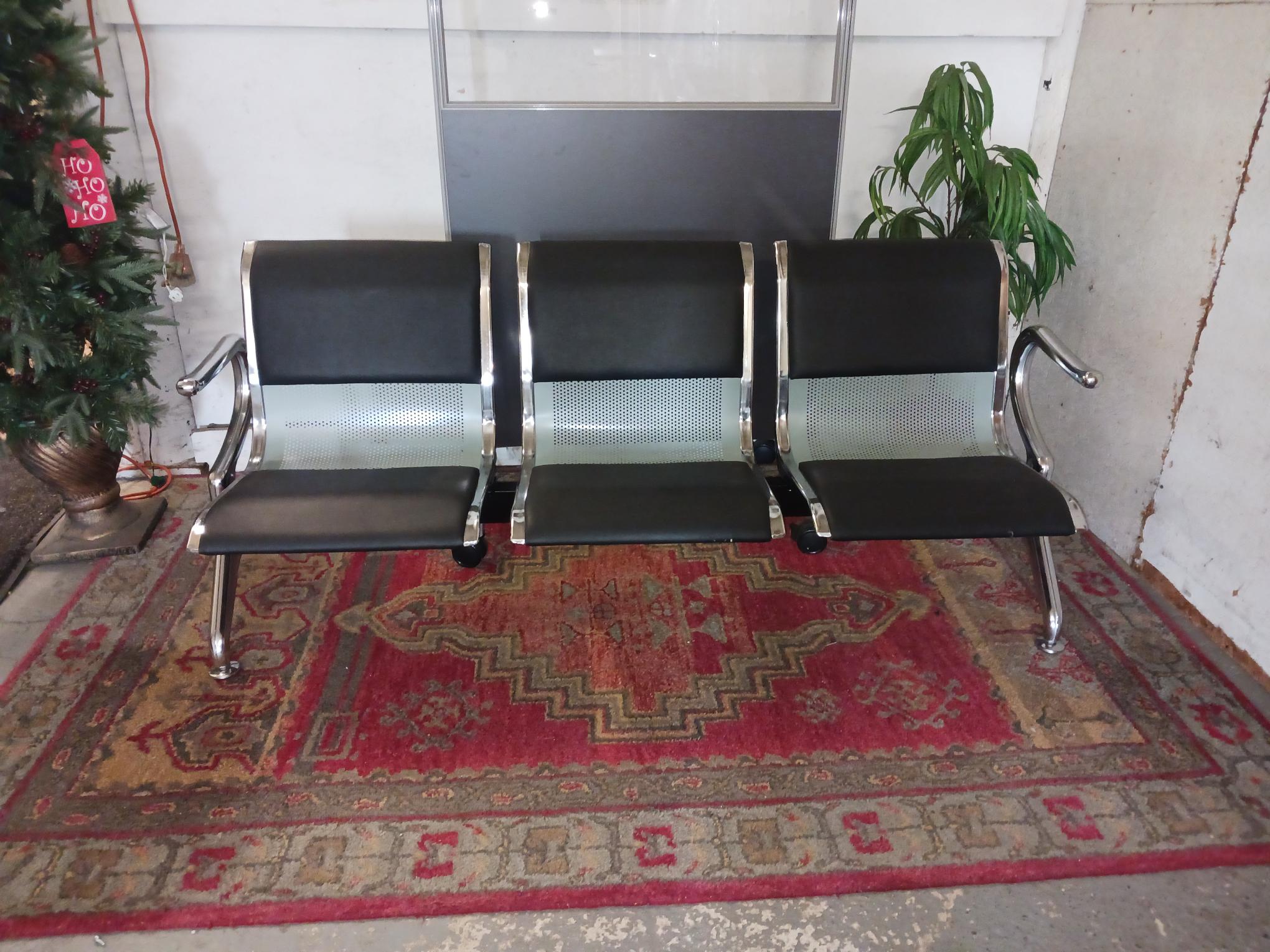 This robust, commercial-grade tandem seating bench provides durable and comfortable seating, ideal for high-traffic environments such as waiting rooms, lobbies, airports, medical facilities, or large offices. The sleek design features a modern aesthetic with chrome accents and practical, padded seating. This reliable and stylish bench offers a superior seating solution for professional settings.