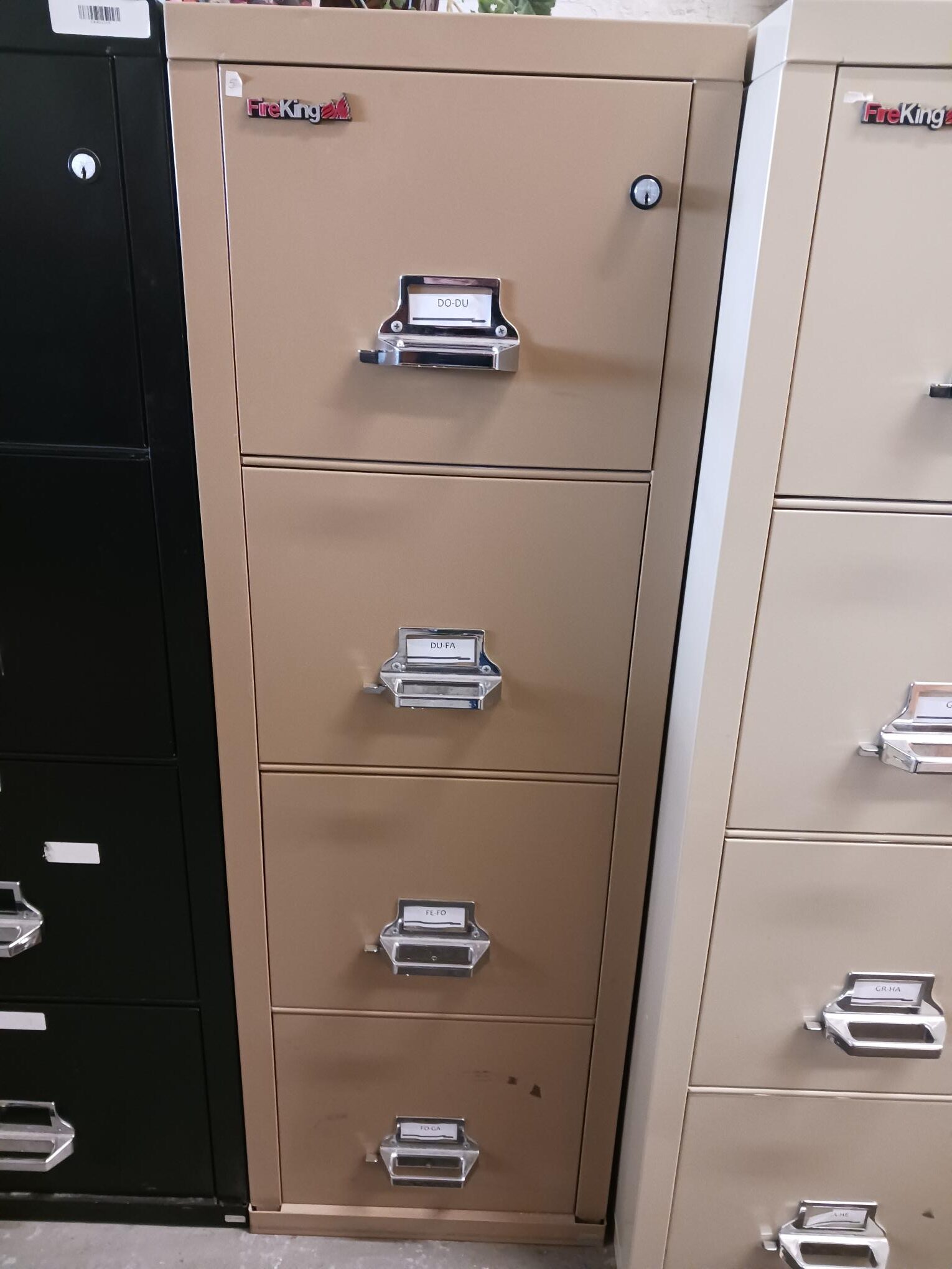 Heavy duty, fireproof, 4 drawer vertical filing cabinet in deep tan