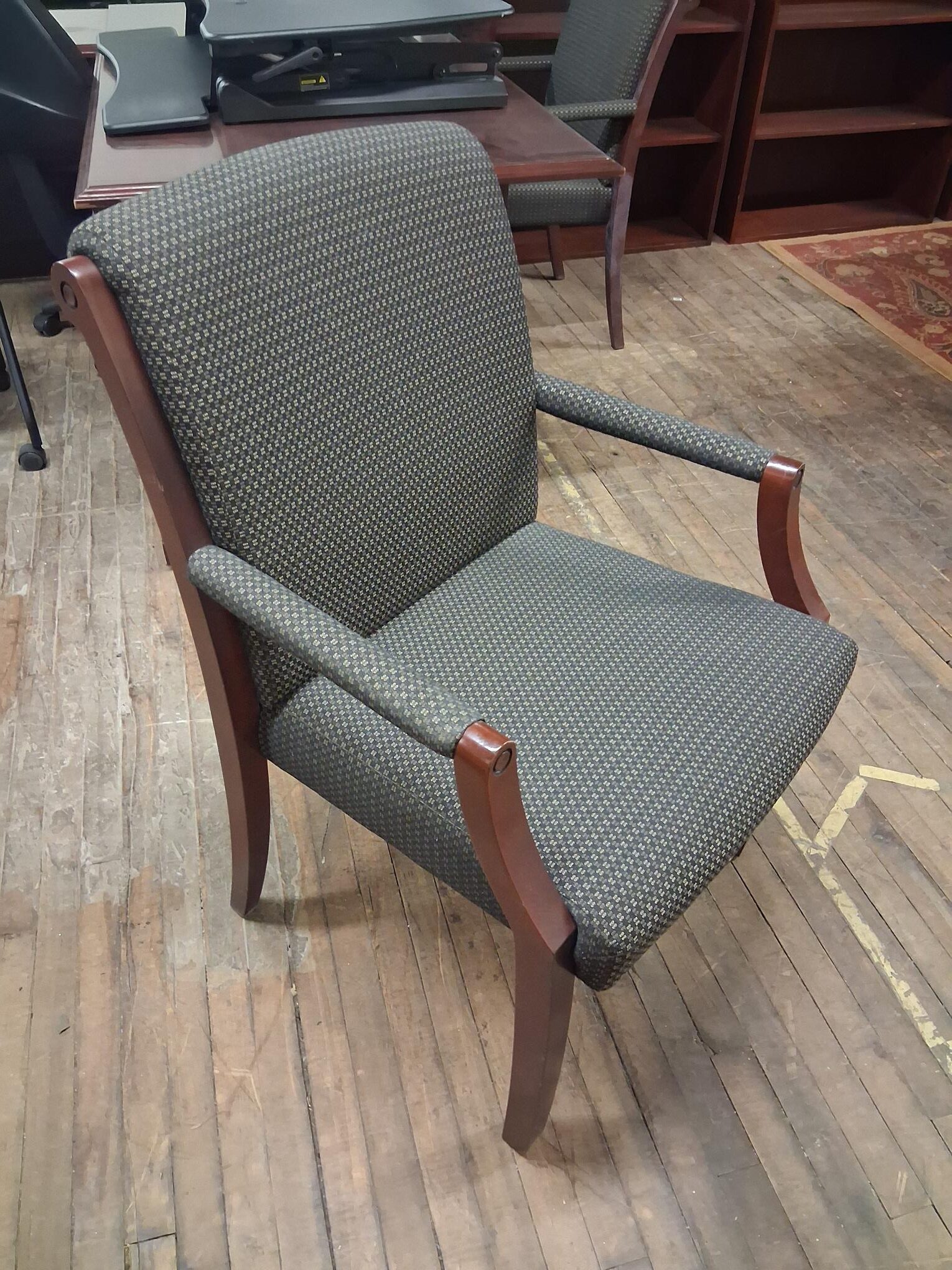 Create an inviting and sophisticated first impression with this elegant wood-frame side chair. Combining timeless design with exceptional durability, it is engineered for long-lasting use in executive offices, reception rooms, or high-end waiting areas. The deep mahogany finish complements its tailored upholstery, providing a polished look that fits seamlessly into both traditional and modern decors.