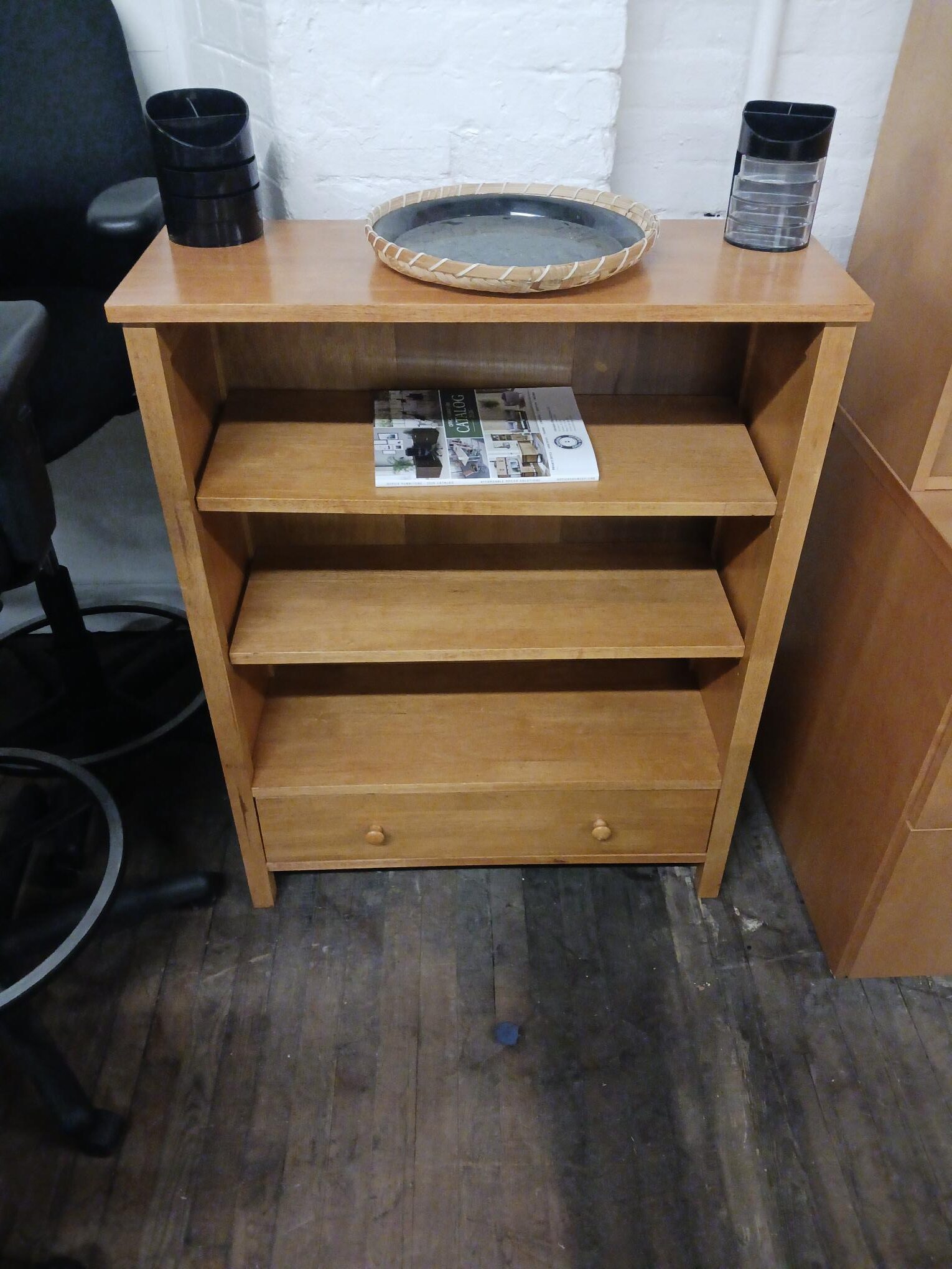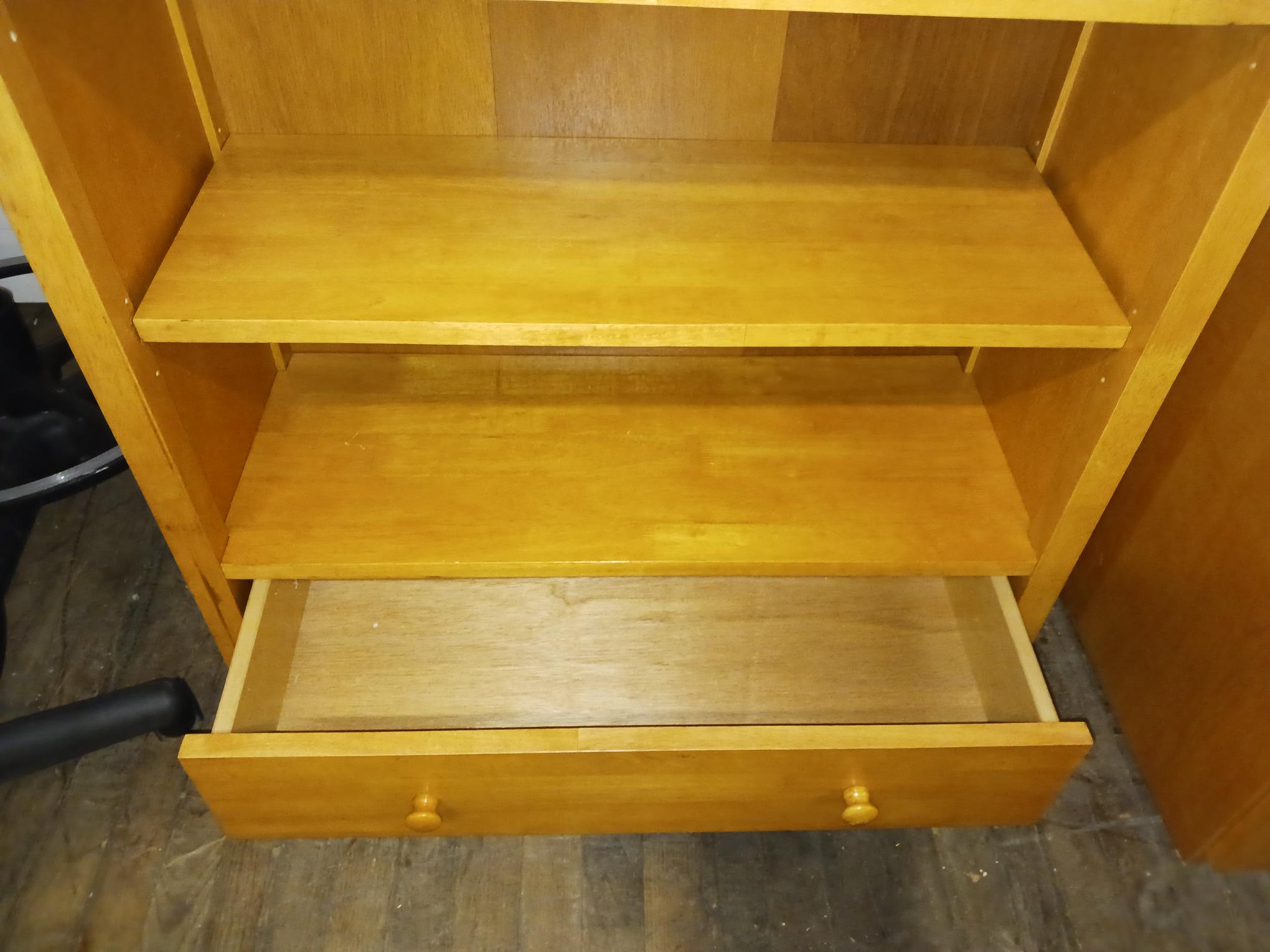 This charming and functional bookcase offers a seamless blend of open display space and discreet storage, presented in an attractive honey cherry finish. Its’ simple, clean lines allow it to integrate easily into various decor styles, from traditional to modern. This piece is a practical and stylish addition that will enhance the organization and aesthetic of your home or office.