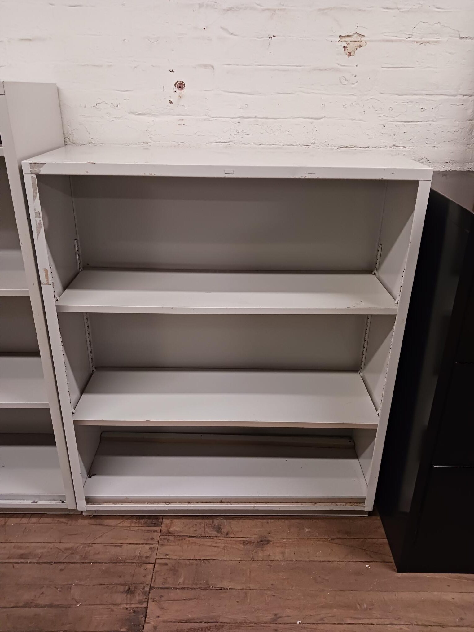 This robust, industrial-style bookcase made by HON provides practical and sturdy storage for an office, garage, or utility space. The clean, light grey finish offers a neutral look that is both professional and easy to maintain. This reliable bookcase is an excellent solution for maximizing vertical storage in any environment.