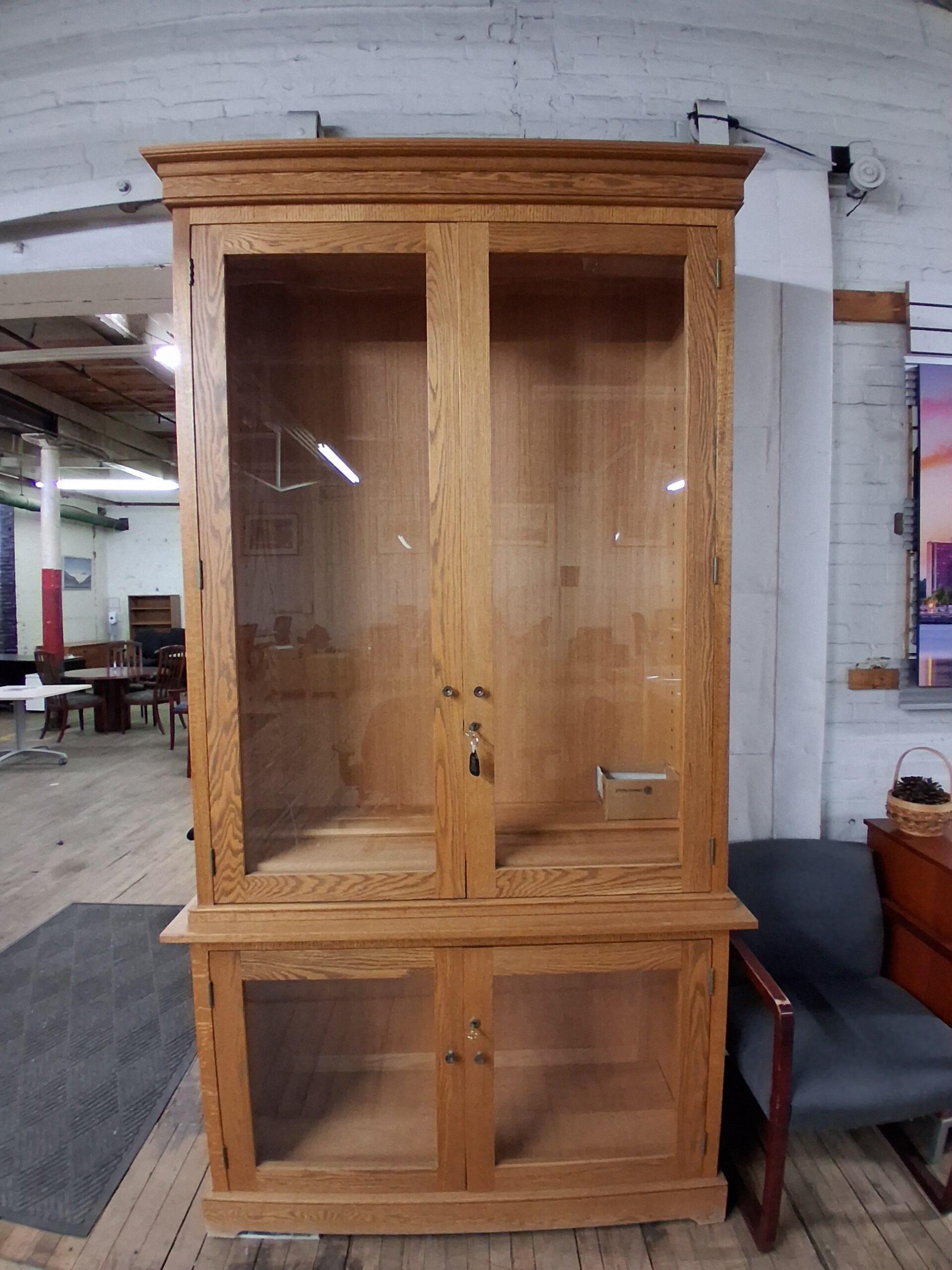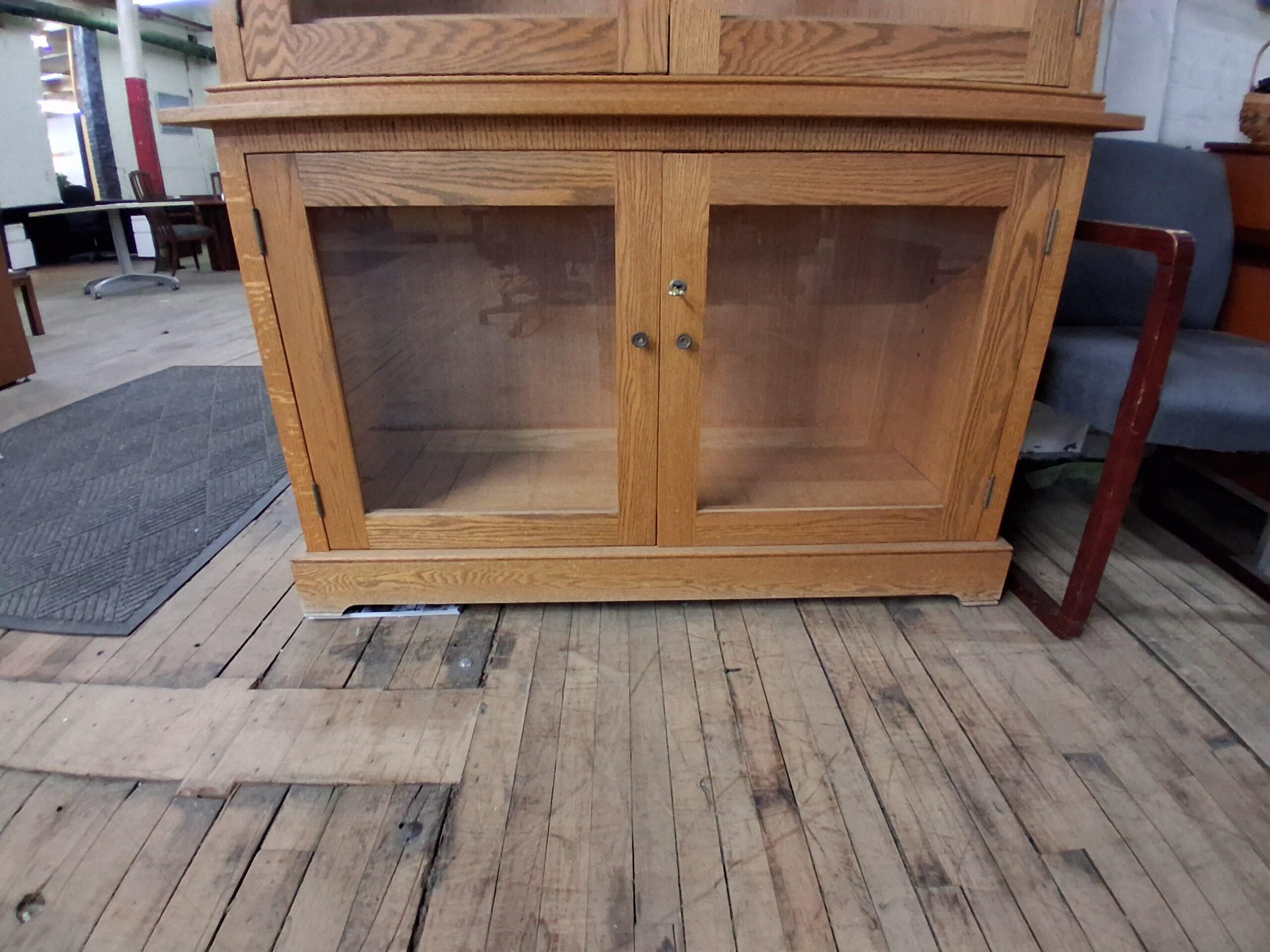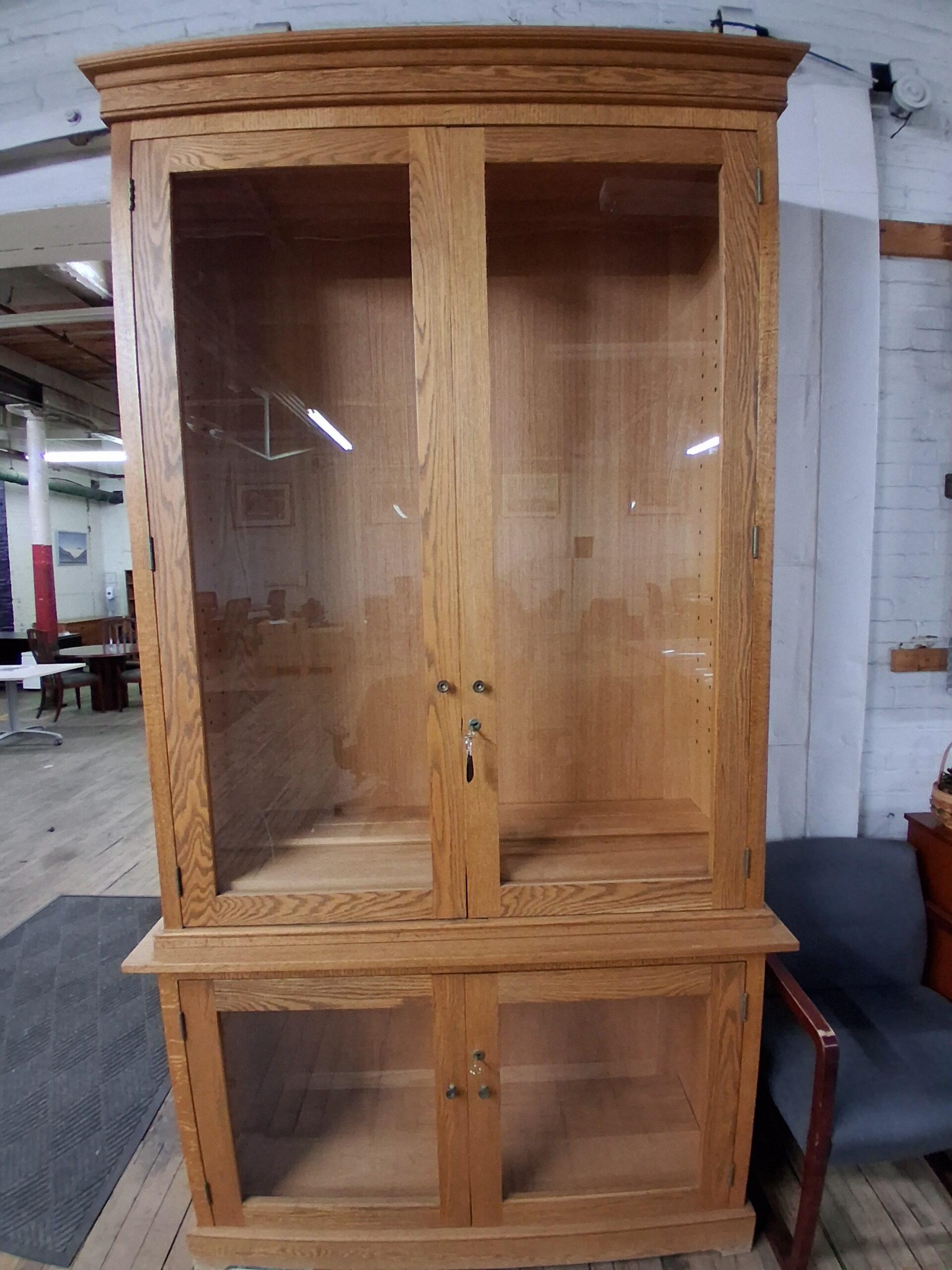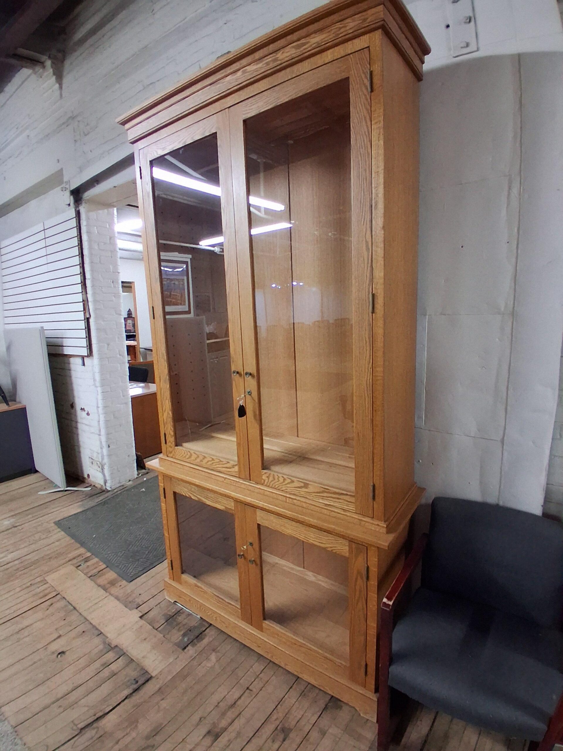 Tags: Adjustable Shelves, Combo Unit, Double Doors, Glass, Locking, Oak, Shelving, Storage