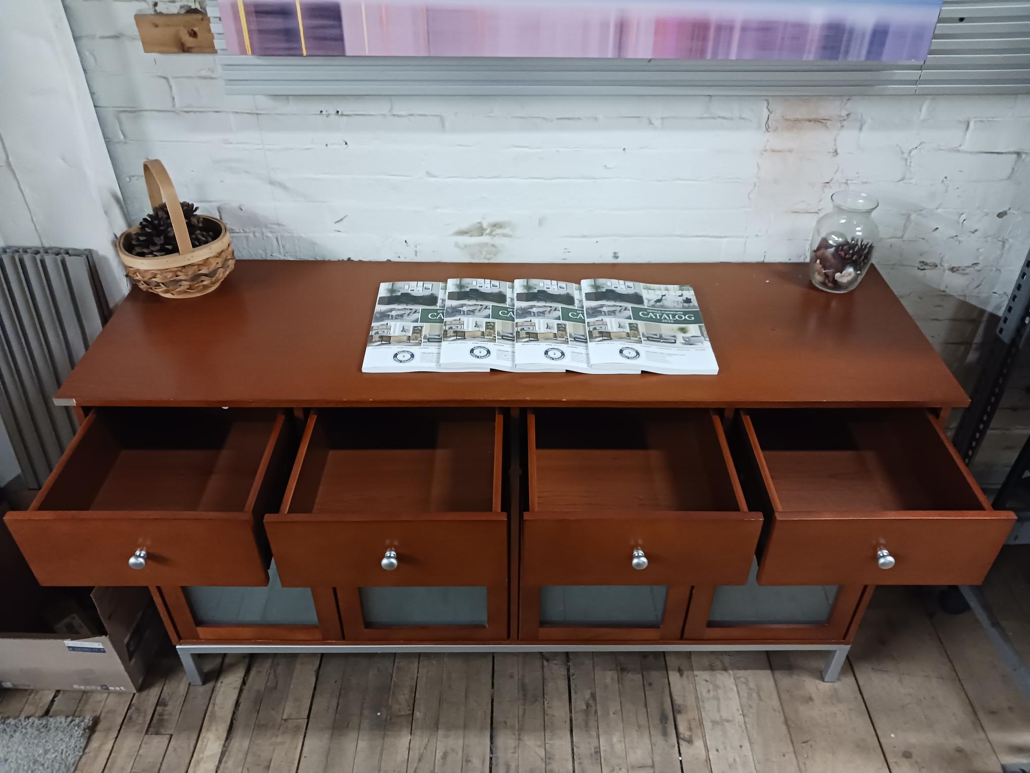 - Versatile Use: Ideal as a wide stand, media console, a functional office credenza, or a sophisticated buffet cabinet in a dining room.
