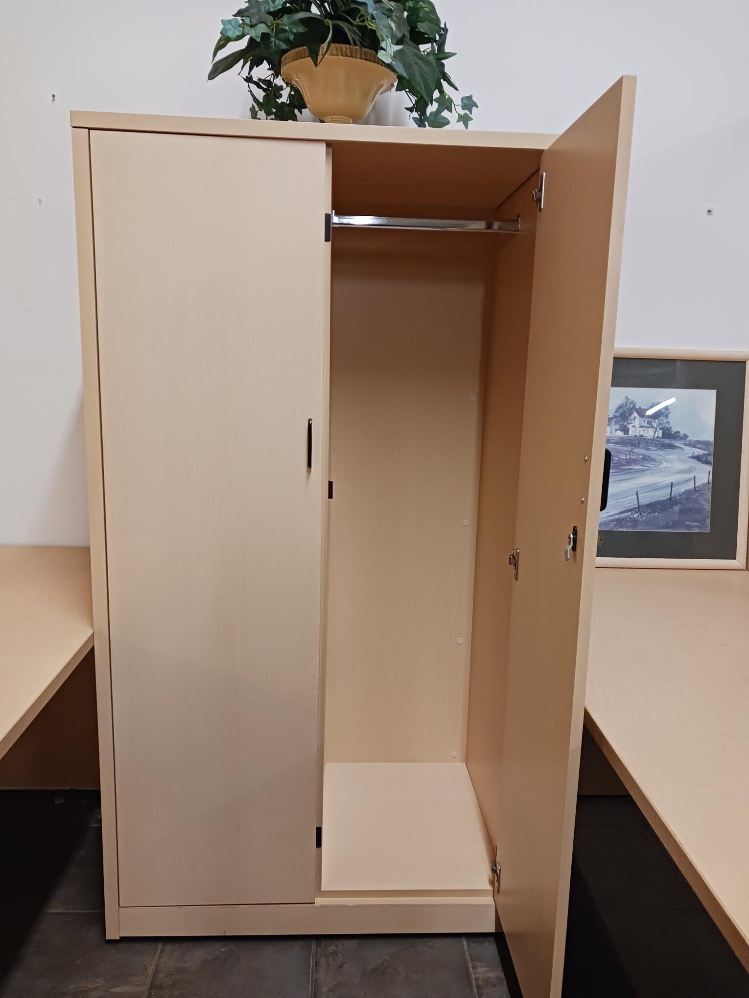 This functional and stylish HON 10500 wardrobe cabinet provides generous vertical storage, perfect for an office, home workspace, or general utility area. Featuring a durable, light maple laminate finish, it offers a clean, neutral aesthetic that easily coordinates with a variety of interiors. This piece is an excellent solution for anyone looking to add organized, secure storage and a bright, clean look to their environment.